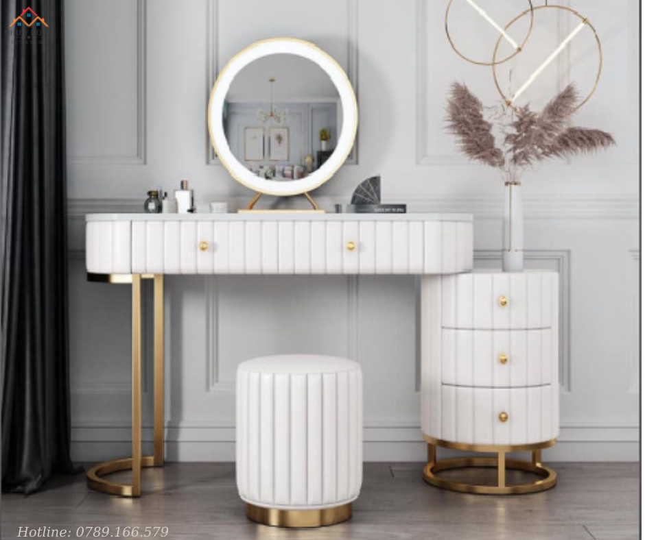 Bàn trang điểm để bàn được làm từ chất liệu đá Marble, viền nhung, chân bàn được làm bằng sắt rèn kim loại thân thiện với môi trường, có độ bền và kết cấu ổn định